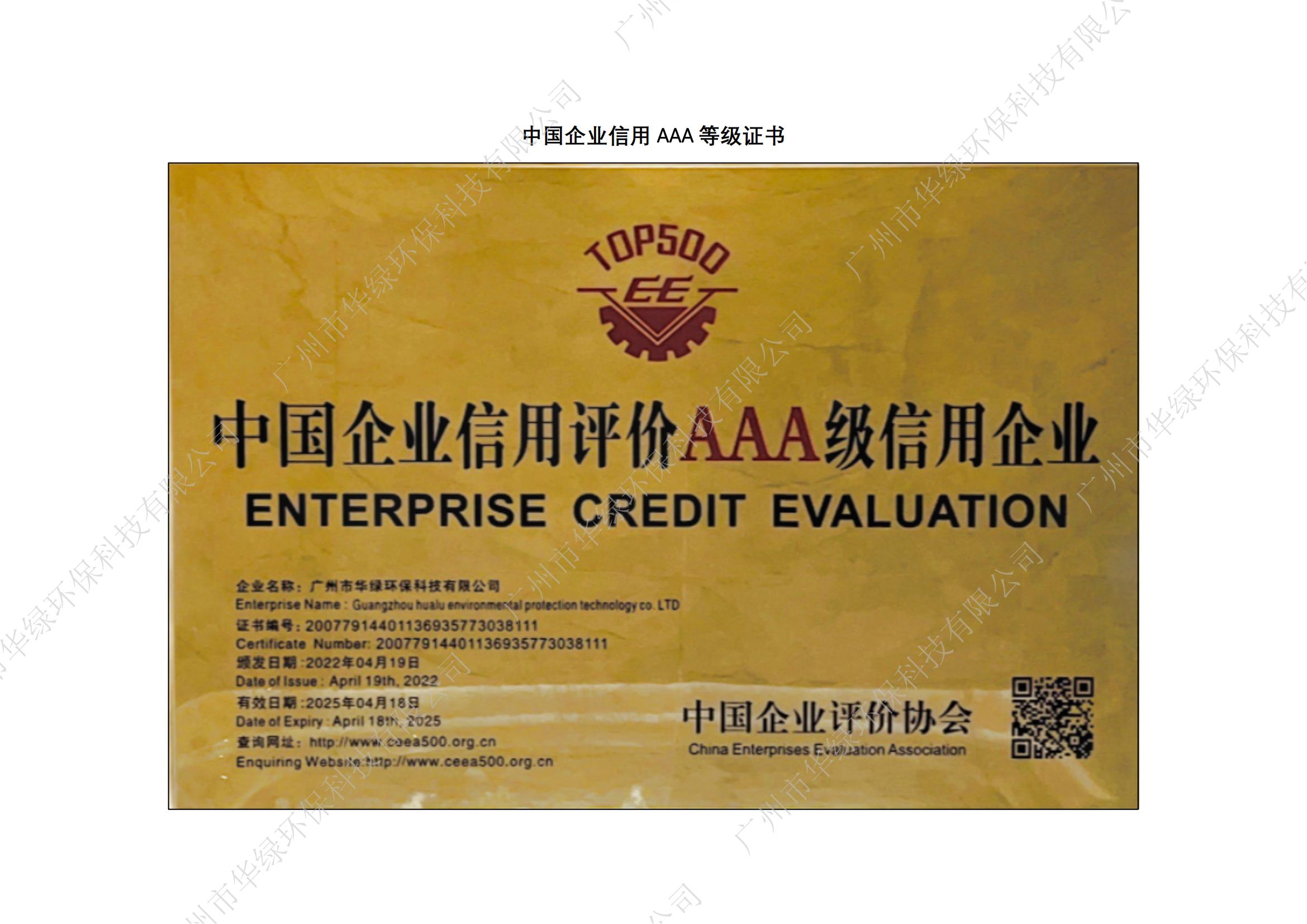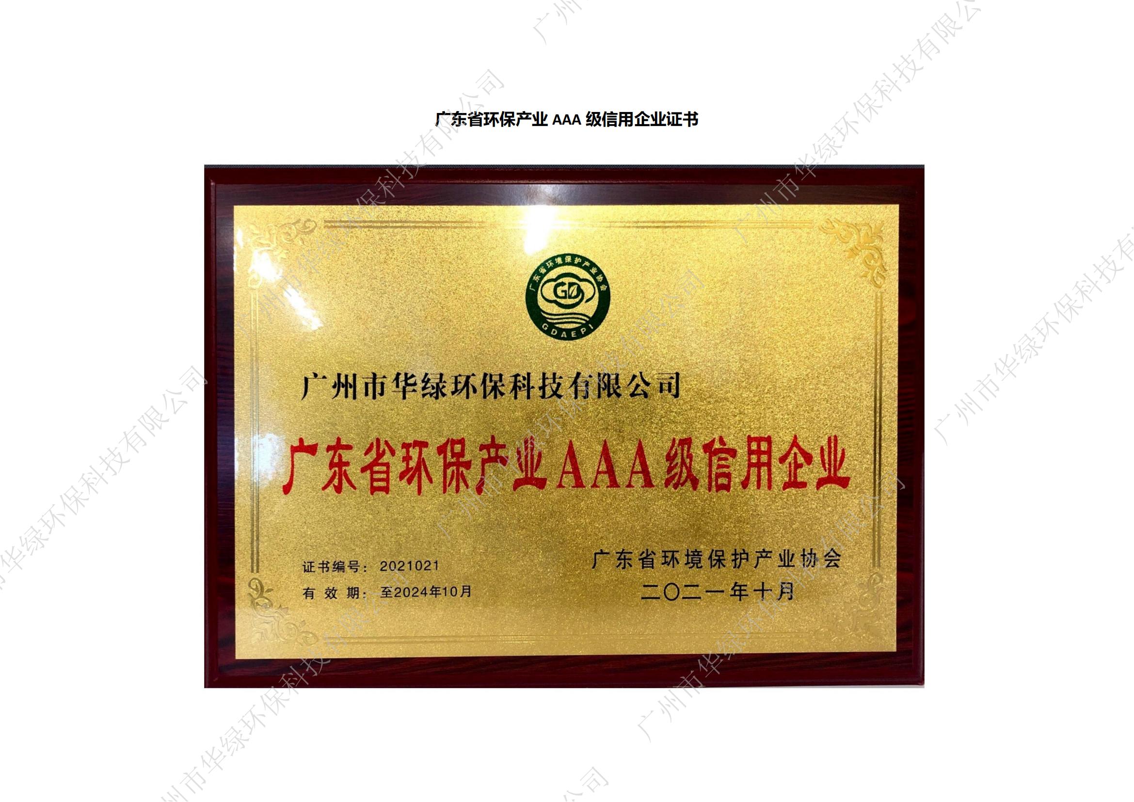 廣東省環(huán)保產(chǎn)業(yè)AAA級信用企業(yè)